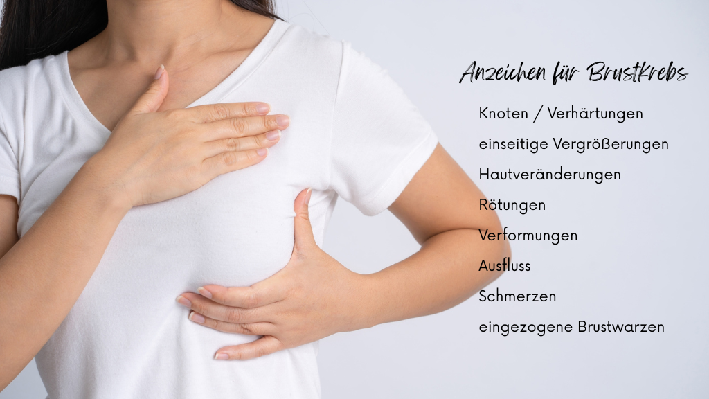 - Ein oder mehrere ertastbare Knoten oder verhärtetes Gewebe in der Brust