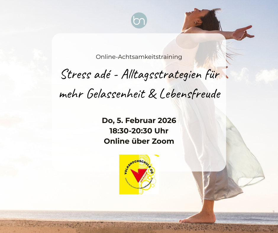 Passend zu meiner persönlichen Mental-Detox Woche, biete ich im Februar in Kooperation mit der VHS ein Online-Achtsamkeitstraining an. In unserer schnelllebigen Welt mit den vielen Aufgaben und Reizen, denen wir tagtäglich ausgesetzt sind, ist unser Nervensystem ständig in Alarmbereitschaft. Wir spüren innere Unruhe, vielleicht auch vermehrt Ängste und merken durch die Daueranspannung vielleicht auch körperliche Beschwerden. Das muss nicht sein.